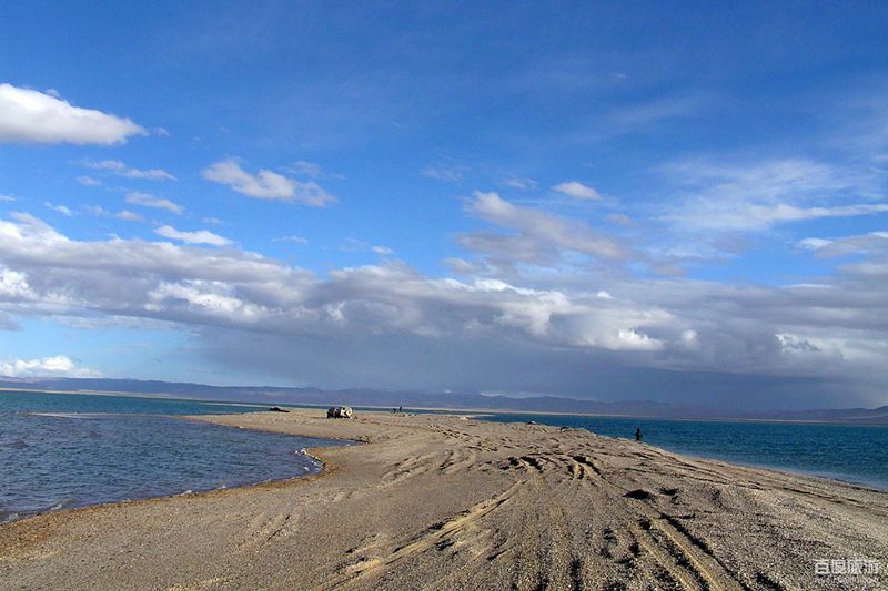 鲸鱼湖位于若羌县东南部的昆仑山腹地,面积260平方公里,湖面海拔高达4708米。湖水与雪山冰峰相互辉映,湖的形状恰似一条横卧着的肥大鲸鱼,头东尾西,故而得名“鲸鱼湖”。东半湖因有玉浪河补给,湖水咸度较低,西半湖因无淡水补给,蒸发强烈,湖水含盐量几乎达到饱和状态,是一个没有生命的死湖。由于两湖水质差异明显,自然形成东湖“鸥歌鸭舞”、西湖“万马齐喑”的鲜明对比,因此,人们又把鲸鱼湖叫做“阴阳湖”。