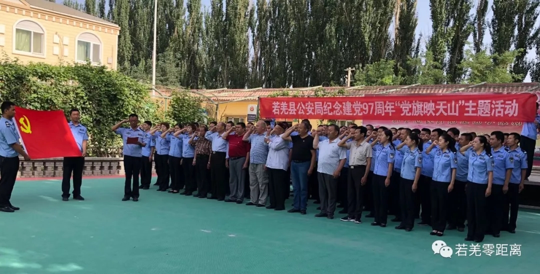 为纪念建党97周年,继承革命传统,牢记光荣使命,6月23日,若羌县公安局组织全局党员干部及退休老干部,开展以“党旗映天山”为主题的系列活动,回顾党的光辉历史,讴歌党的丰功伟绩。